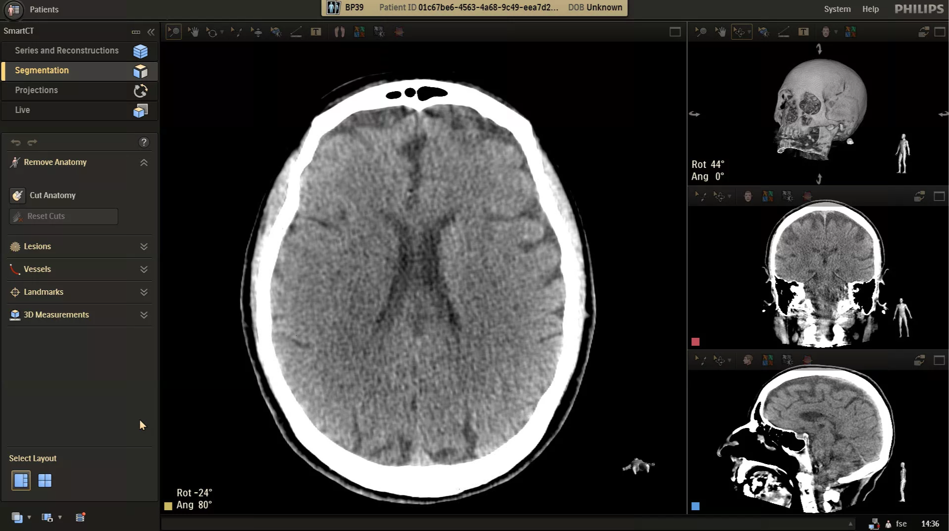 The SmartCT application is a tool that makes it easy for doctors to take 3D images during medical procedures. It's designed to be simple to use, even for doctors who may not have a lot of experience with 3D imaging.